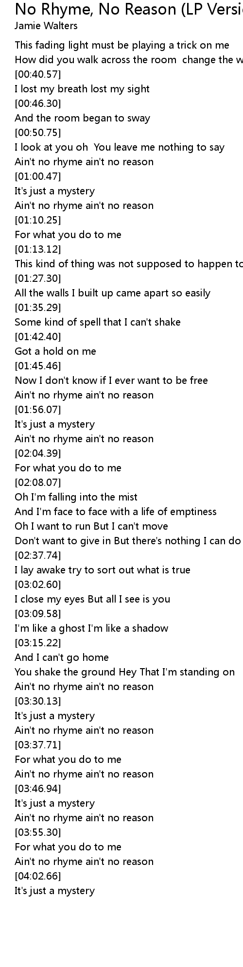 Ain't no rhyme ain't no reason |