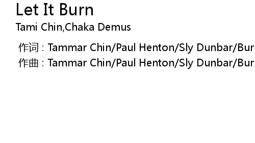 | [00:00.000] | zuo qu : Tammar Chin Paul Henton Sly Dunbar Burro Wood John Taylor |