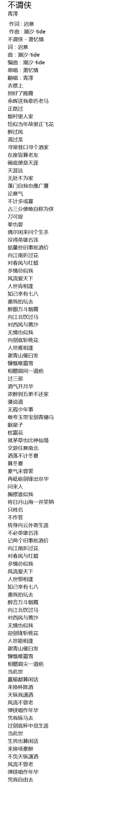 | [00:04.736] | 不谓侠 - 萧忆情 |