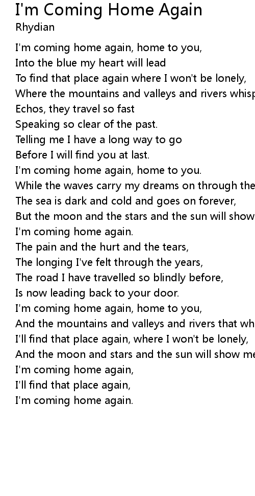| I'm coming home again, | |