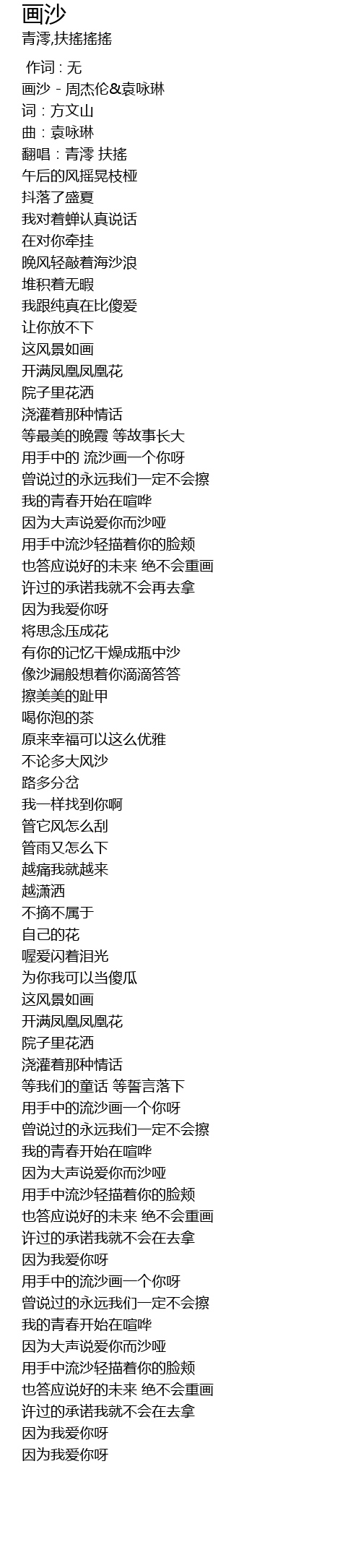 | [00:00.451] | 画沙 - 周杰伦&袁咏琳 |