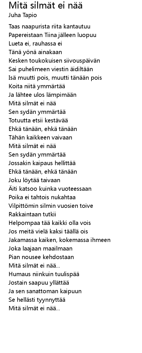 | Jakamassa kaiken, kokemassa ihmeen | |