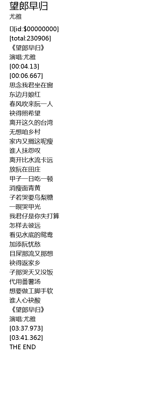 | [03:34.153] | 《望郎早归》 |