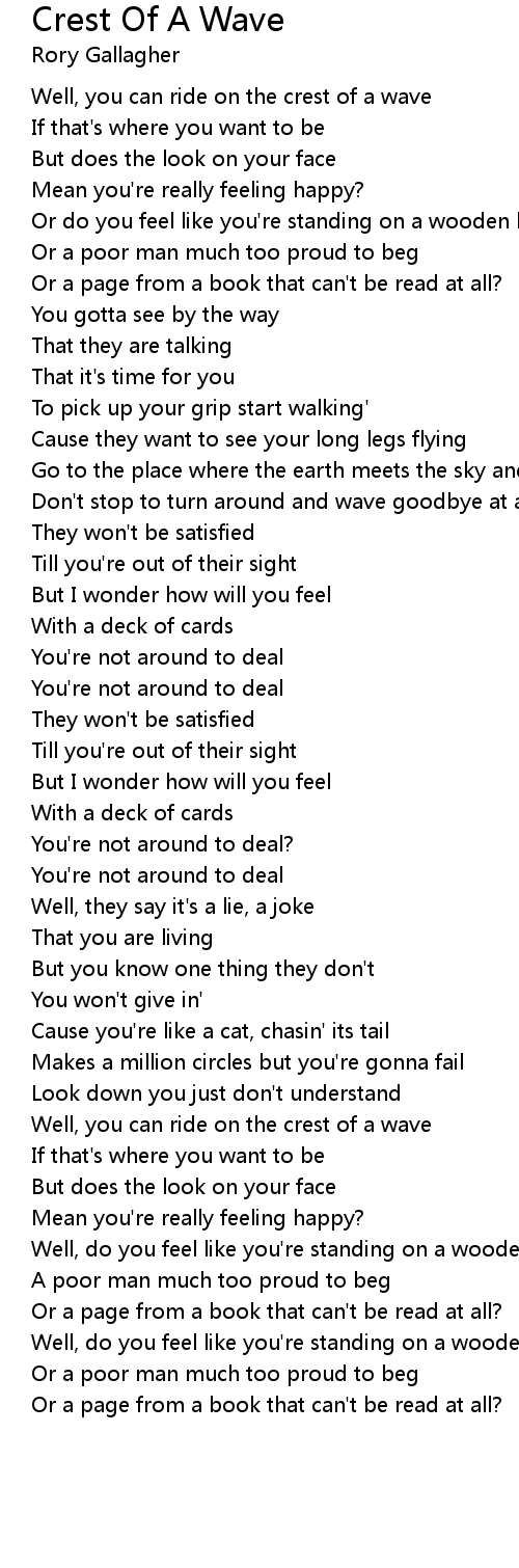Well, you can ride on the crest of a wave |