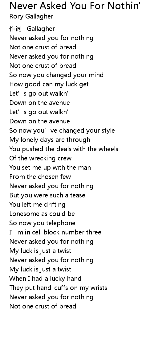 | Never asked you for nothing | |