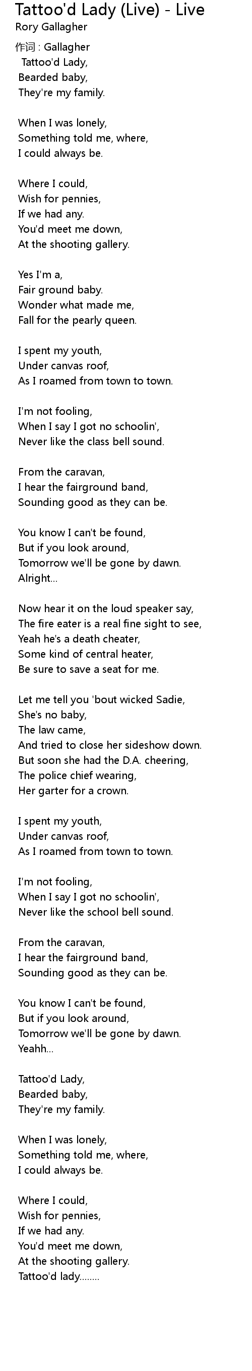 | Tattoo'd Lady, | |