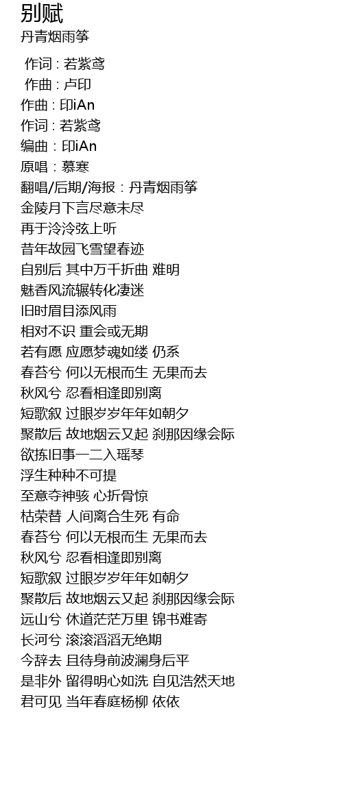 | [00:08.22] | 翻唱/后期/海报:丹青烟雨筝 |