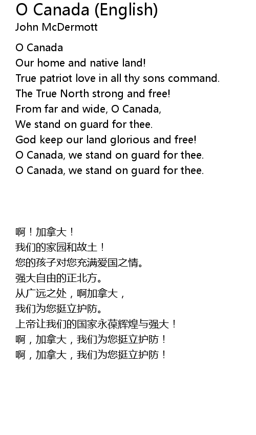 | [01:16.21] | O Canada, we stand on guard for thee. |