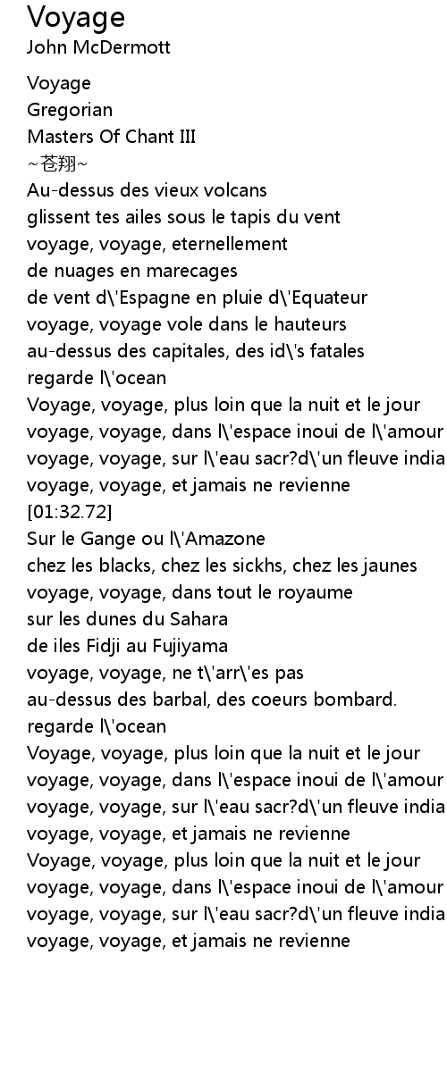 | [03:34.62] | voyage, voyage, et jamais ne revienne |