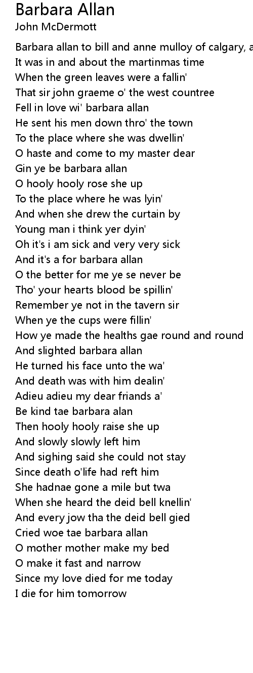 Barbara allan to bill and anne mulloy of calgary, alberta |