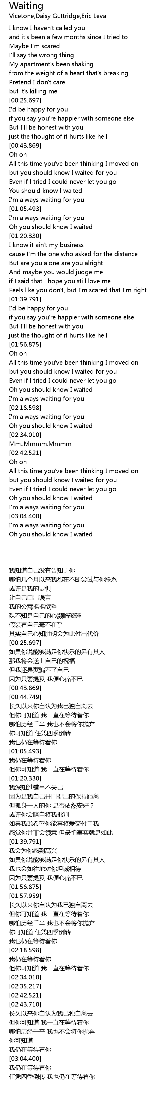 | [00:58.527] | You should know I waited |