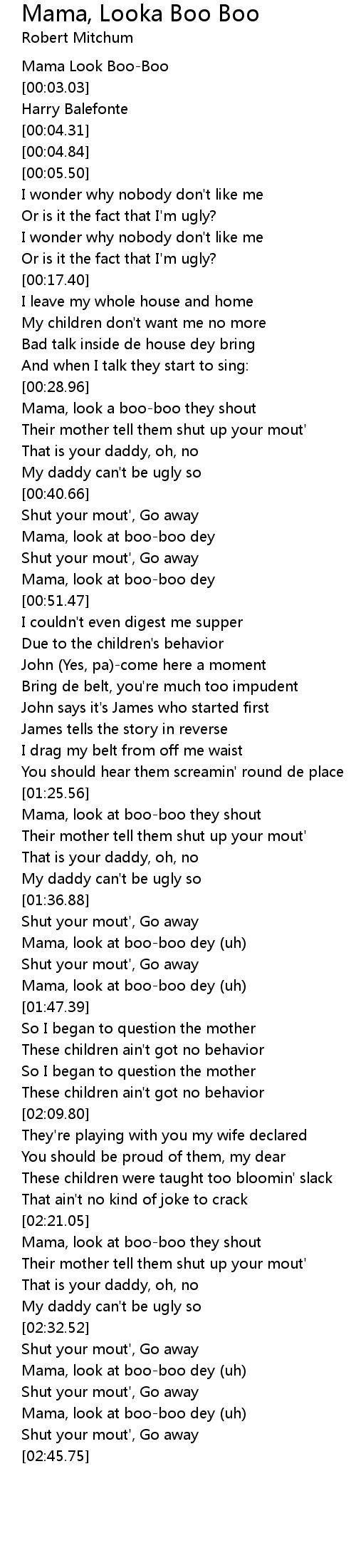 Mama, look a boo-boo they shout |
