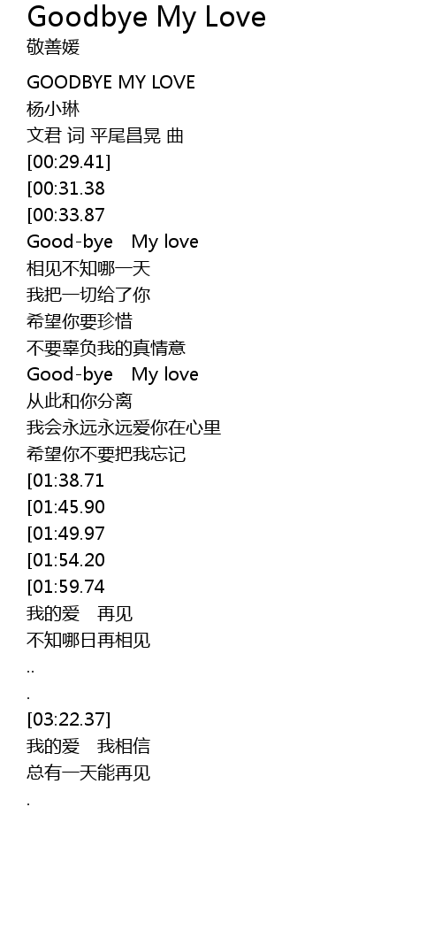 | [01:07.48][00:33.87] | 我的爱人 再见 |
