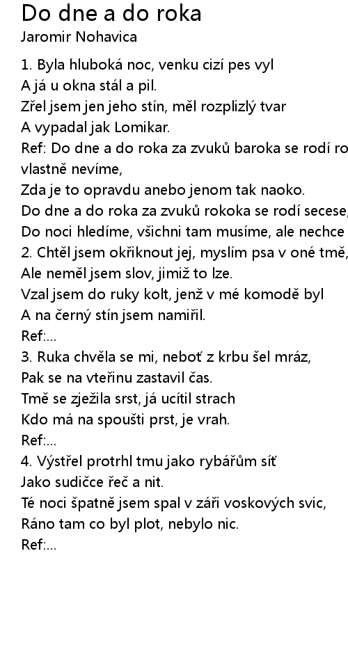 | Ref: Do dne a do roka za zvuků baroka se rodí rokoko, do noci hledíme, a vlastně nevíme, | |