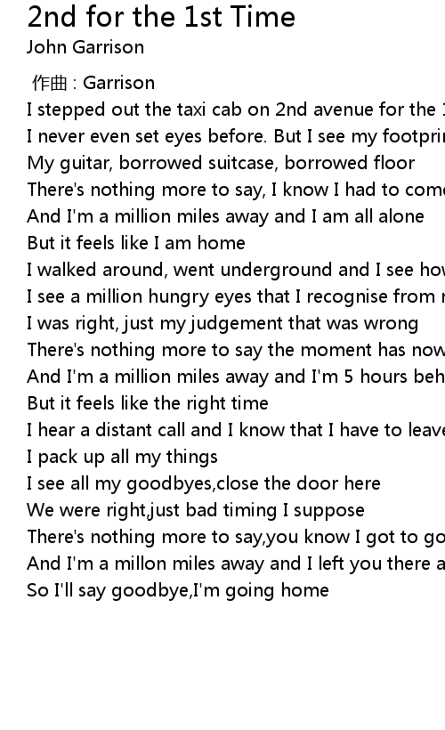| [00:15.60] | I stepped out the taxi cab on 2nd avenue for the 1st time |
