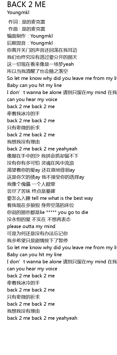 | [00:55] | back 2 me back 2 me yeahyeah |