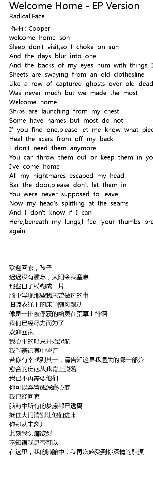 | [00:43.32] | Sleep don't visit,so I choke on sun |