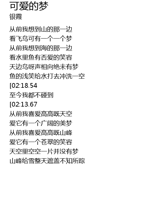 | [00:15.26] | 看飞鸟可有一个一个梦 |