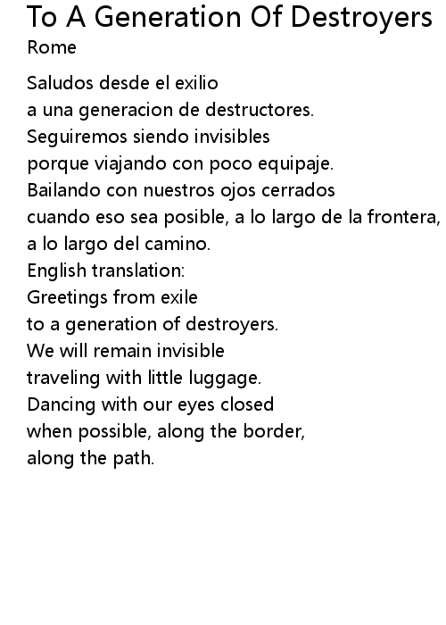 | Song | To A Generation Of Destroyers |