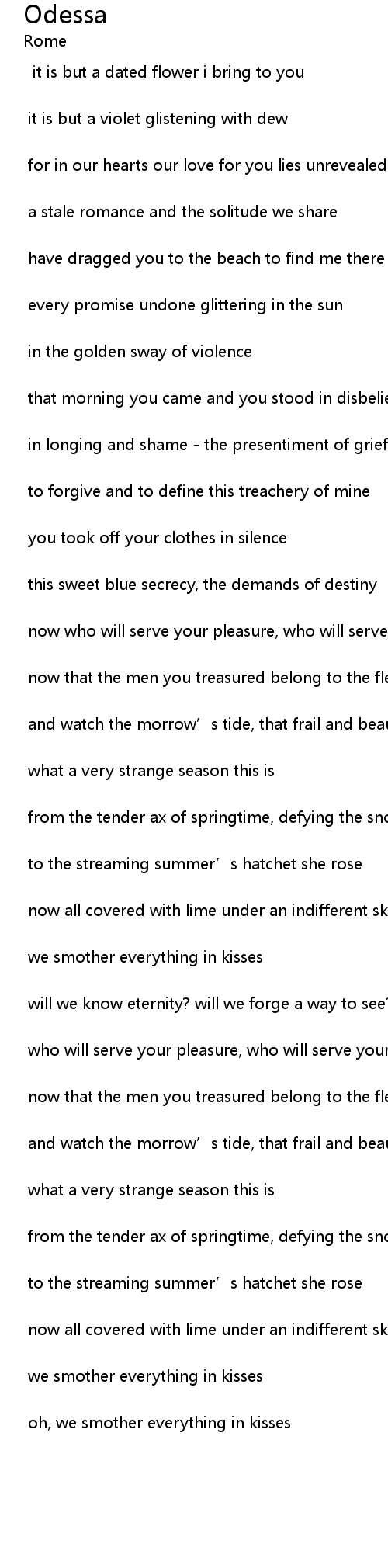 | Song | Odessa |