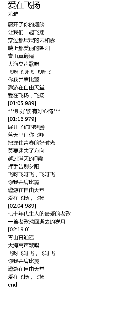 | [01:59.98] | 爱在飞扬,飞扬 |