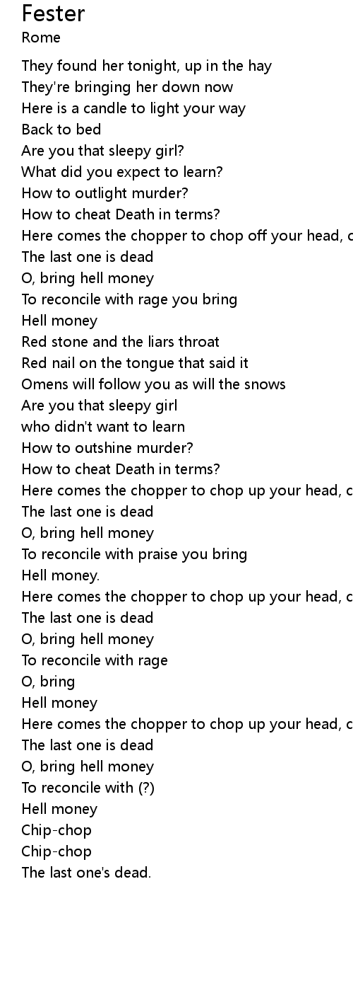 Here comes the chopper to chop off your head, chip-chop. |