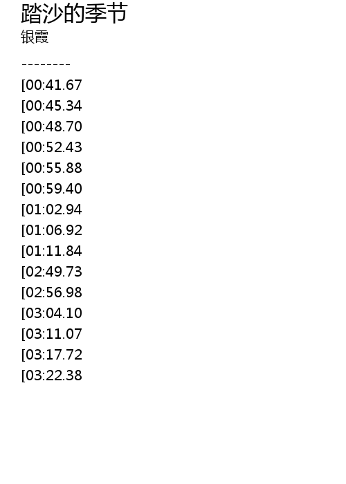 | [03:25.43][02:49.73][01:14.01] | 是谁是谁告诉我在那踏沙的季节 |