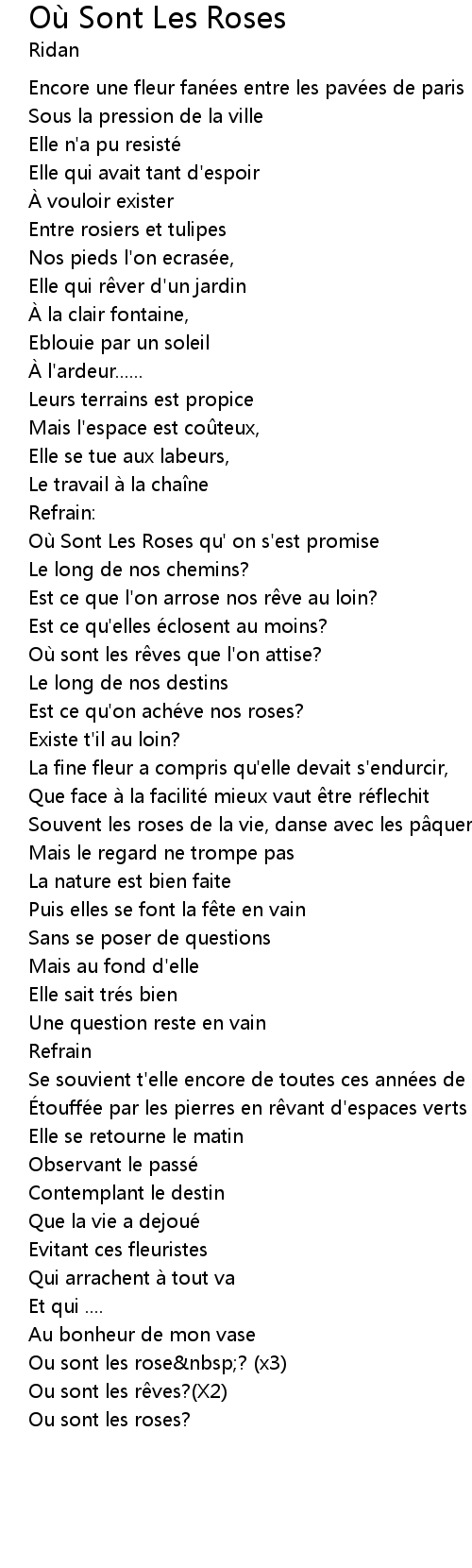 | Song | Où Sont Les Roses |