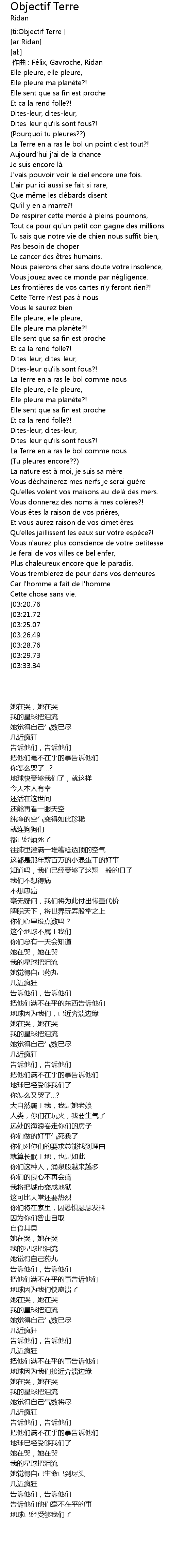 | [03:50.02][03:33.34][03:16.64][02:59.99] | La Terre en a ras le bol comme nous |