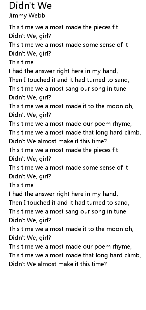 Didn't We almost make it this time? |