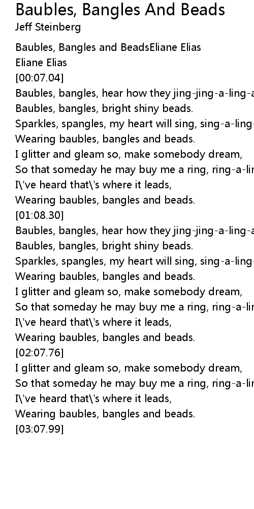 Baubles, bangles, hear how they jing-jing-a-ling-a |