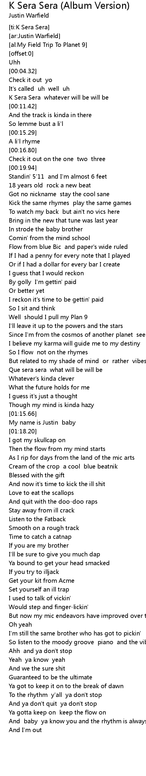[ti:K Sera Sera] |