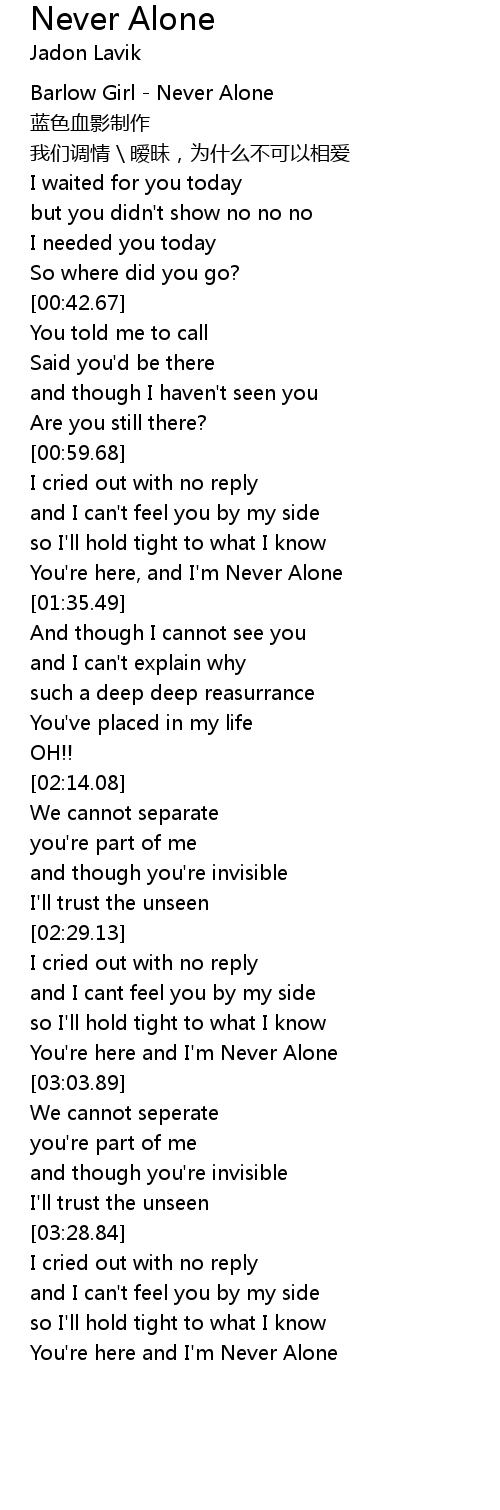 | [01:22.71] | You' re here, and I' m Never Alone |