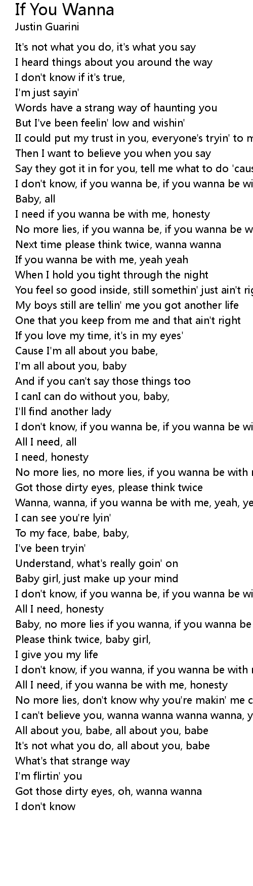 I don't know, if you wanna, if you wanna be with me |