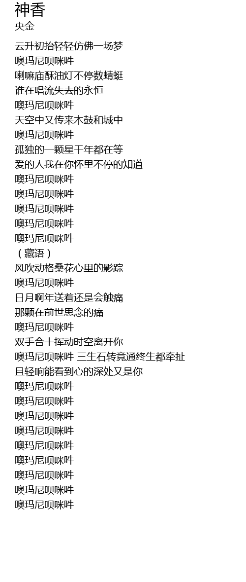 | [04:32.02] | 噢玛尼呗咪吽 |