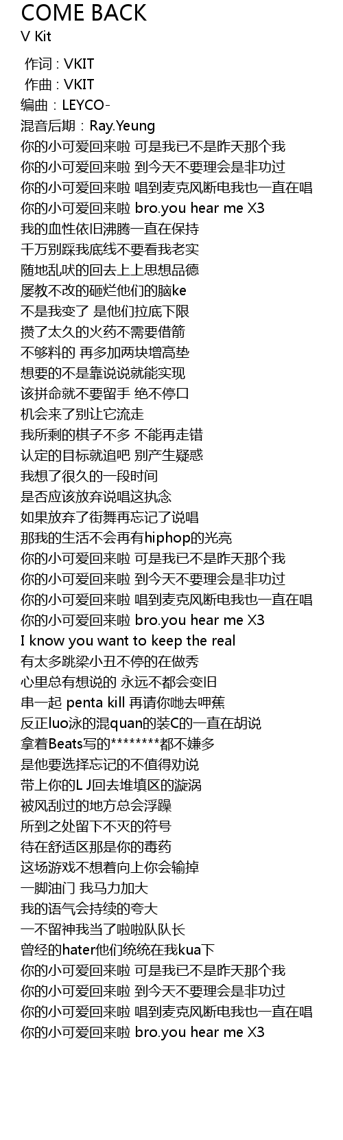 | [02:26.394] | 你的小可爱回来啦 bro.you hear me X3 |