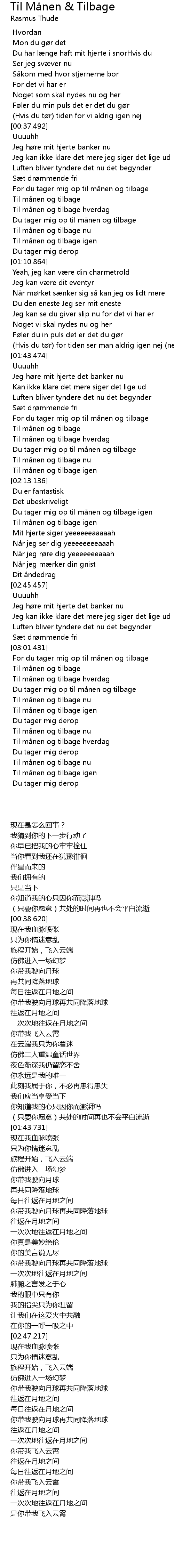 | [02:21.038] | Du tager mig op til m nen og tilbage igen |