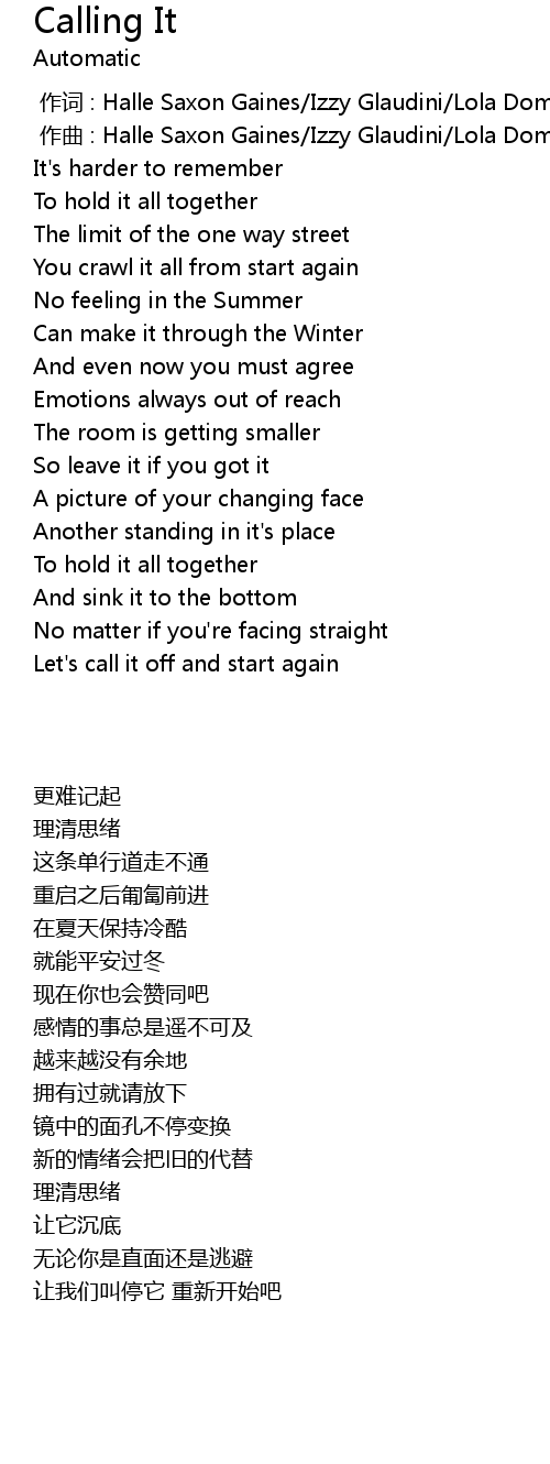 | [00:01.000] | zuo qu : Halle Saxon Gaines Izzy Glaudini Lola Dompe |