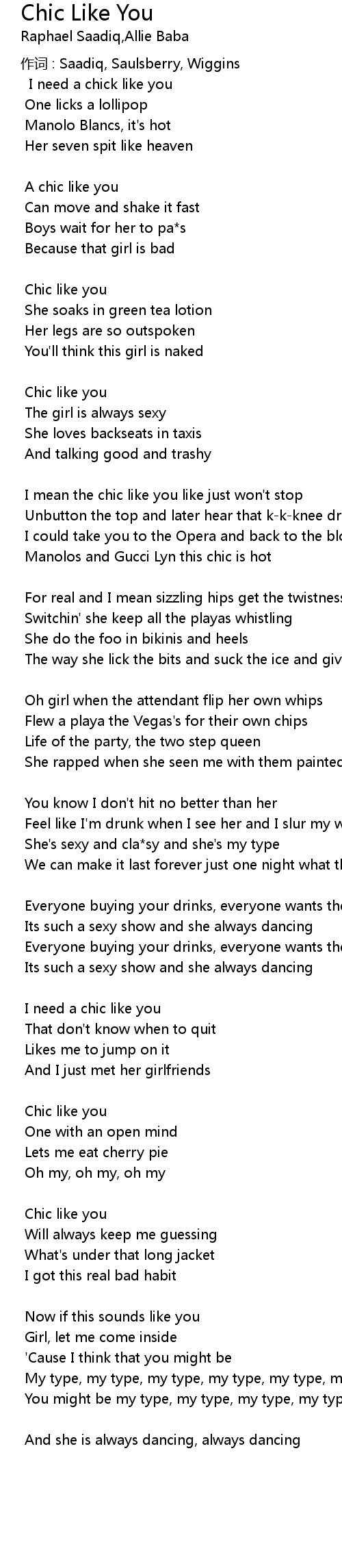 | Song | Chic Like You |