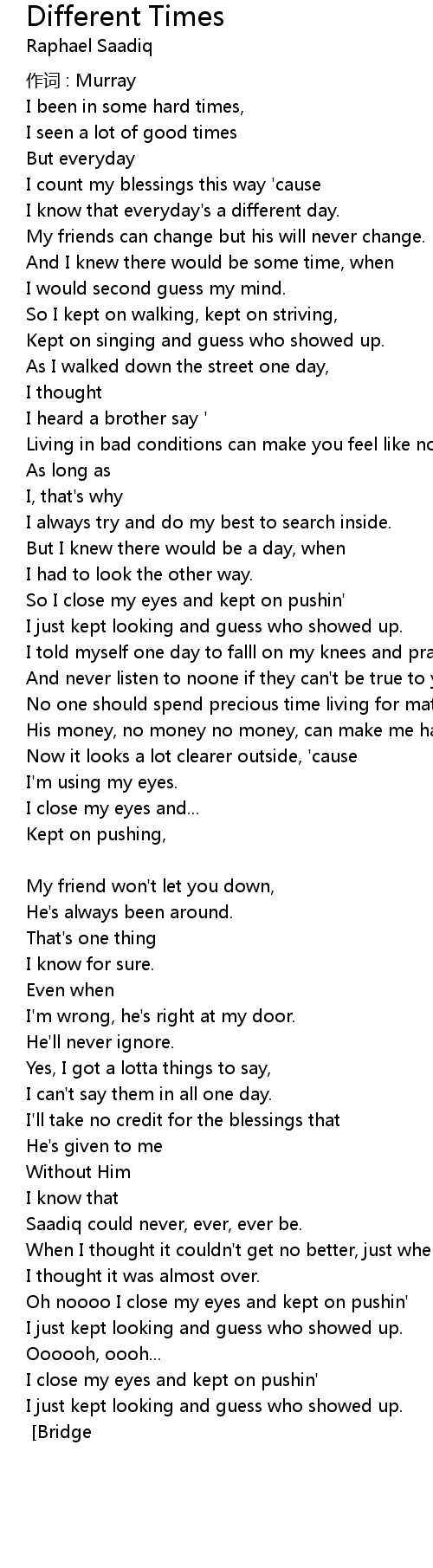 | Song | Different Times |