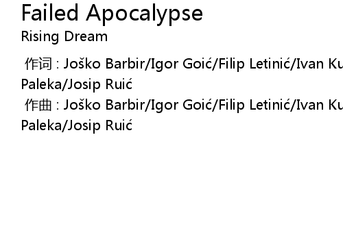 | [00:00.000] | 作曲 : Joško Barbir/Igor Goić/Filip Letinić/Ivan Kutija/Goran Paleka/Josip Ruić |