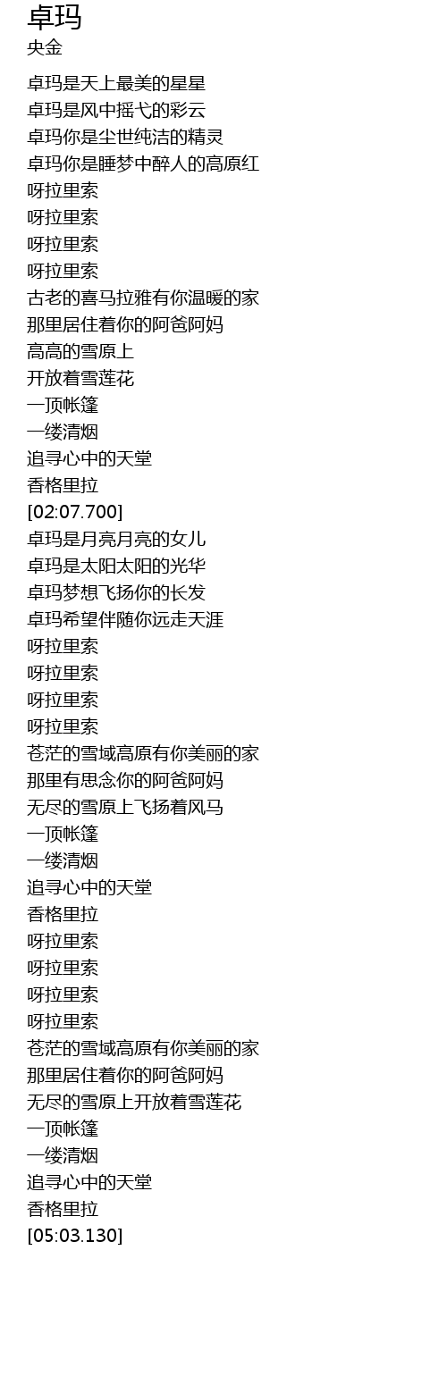 | [02:59.470] | 卓玛希望伴随你远走天涯 |