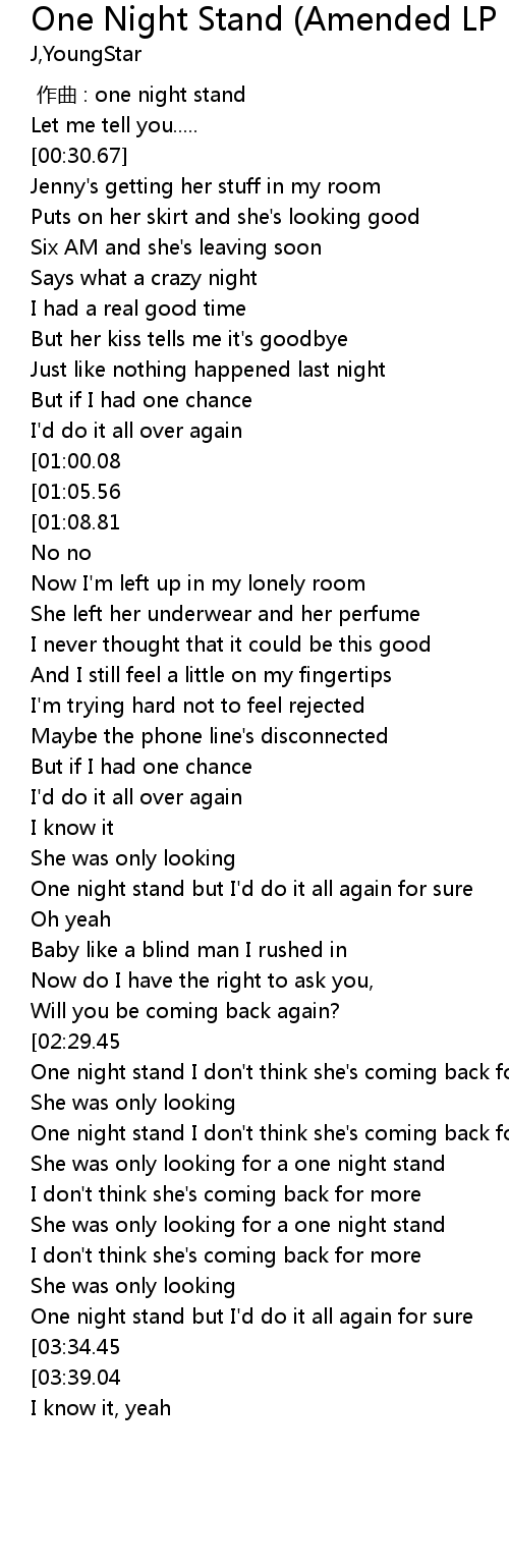 | [03:42.01][03:34.45][03:26.98][03:19.84] | I guess it was a one night stand |
