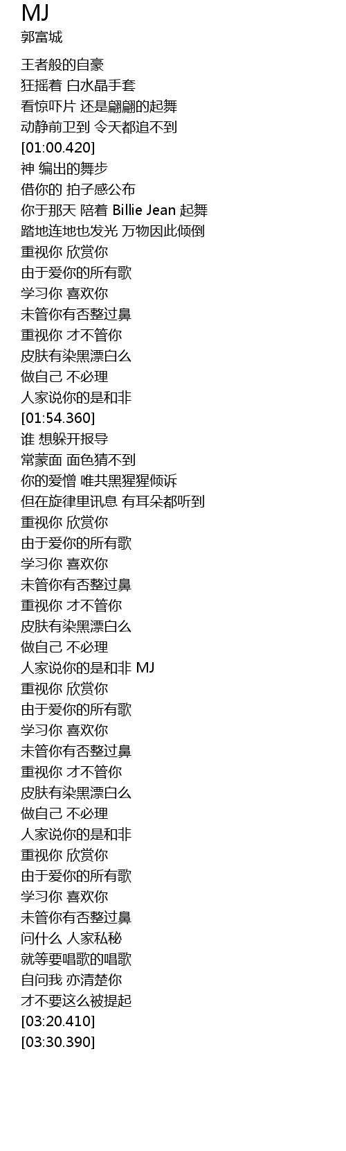 | [01:21.260] | 你于那天 陪着 Billie Jean 起舞 |
