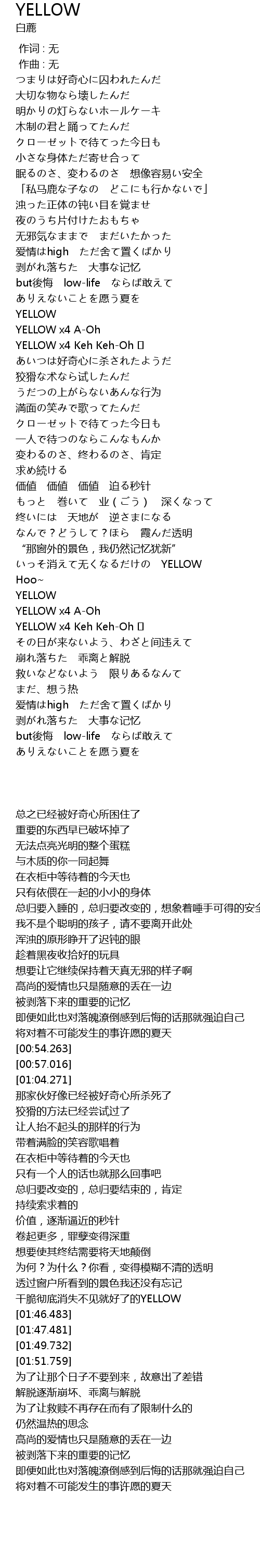 | [01:51.759] | YELLOW x4 Keh Keh-Oh ♬ |