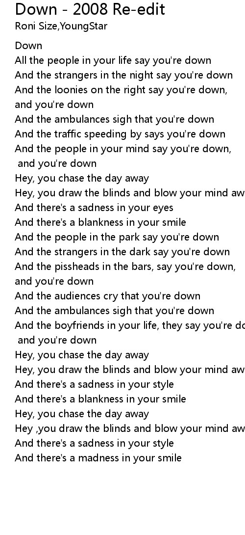 | [00:53.98] | And the traffic speeding by says you're down |