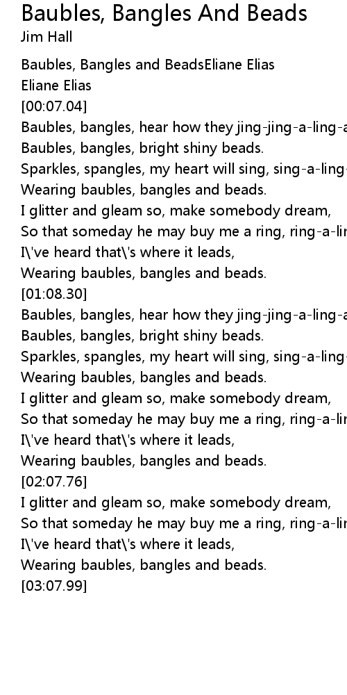 Baubles, bangles, hear how they jing-jing-a-ling-a |