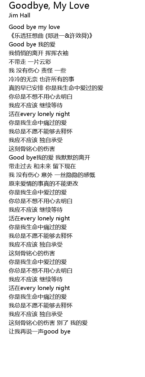 | [01:49.94] | Good bye wǒ de ài wǒ mò mò de lí kāi |