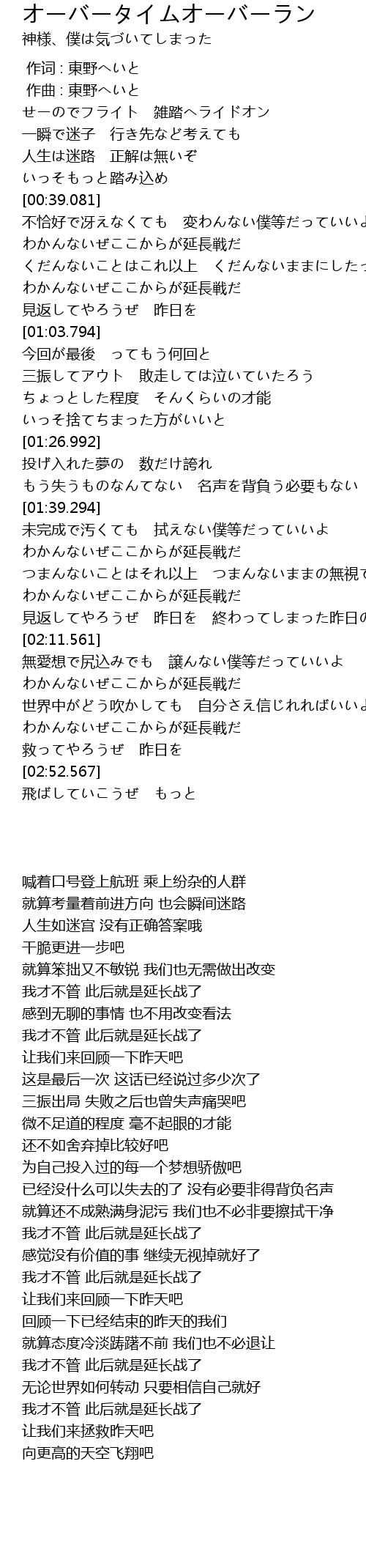 | [02:34.833] | わかんないぜここからが延長戦だ |