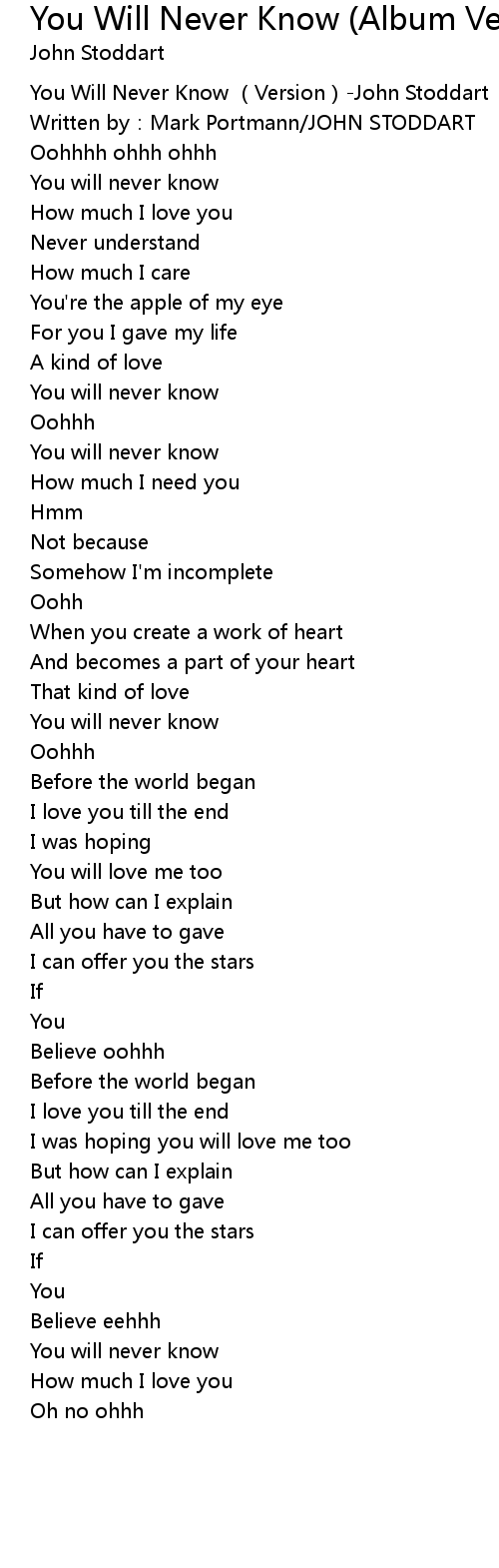 | [00:00.100] | You Will Never Know Version John Stoddart |